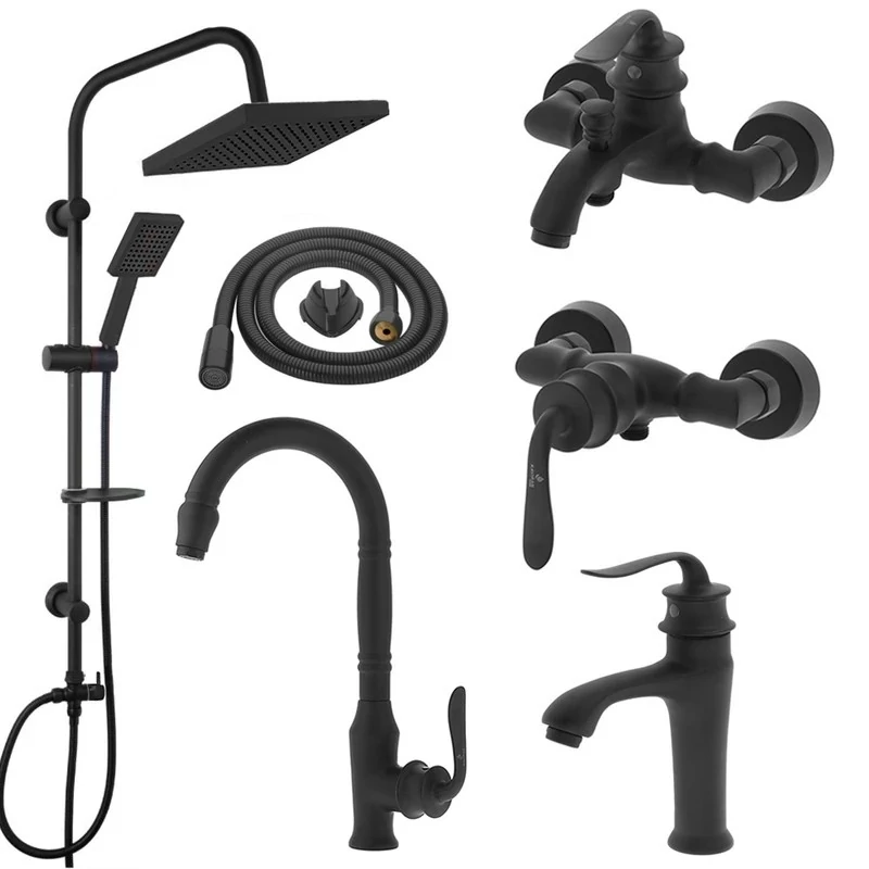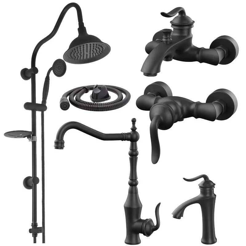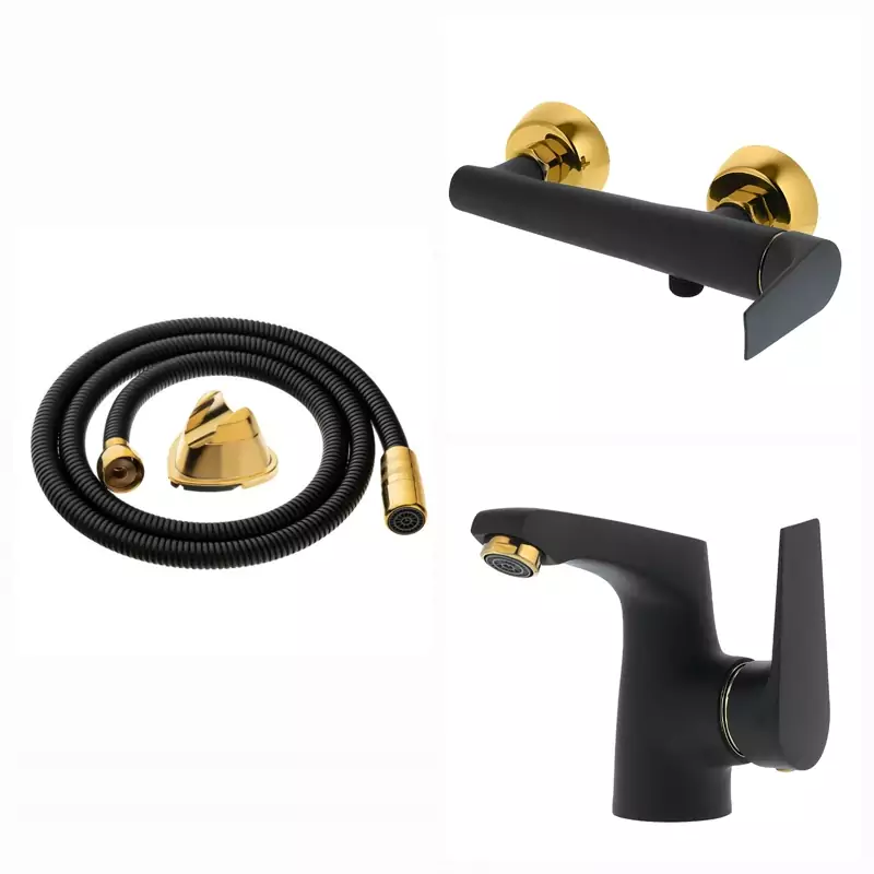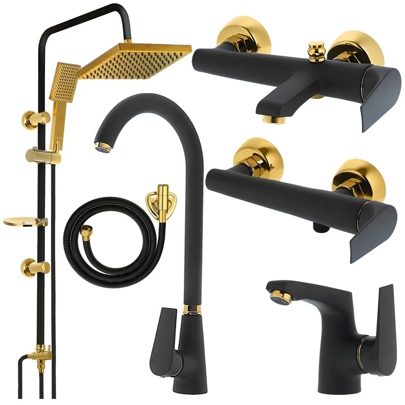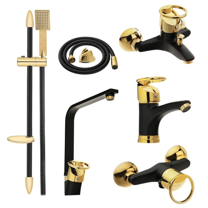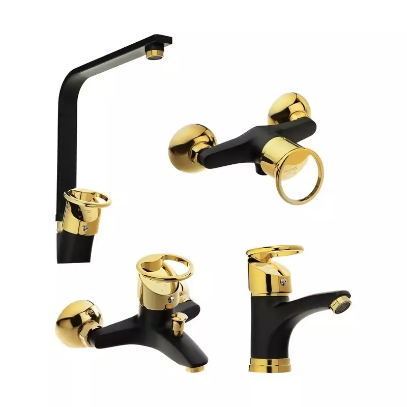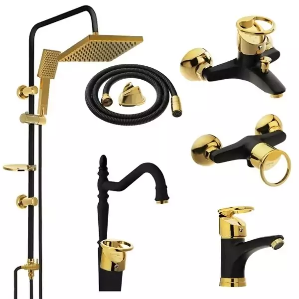 ست شیرالات زحل (مدل درسا مشکی طلا) مجموعه 6 عددی