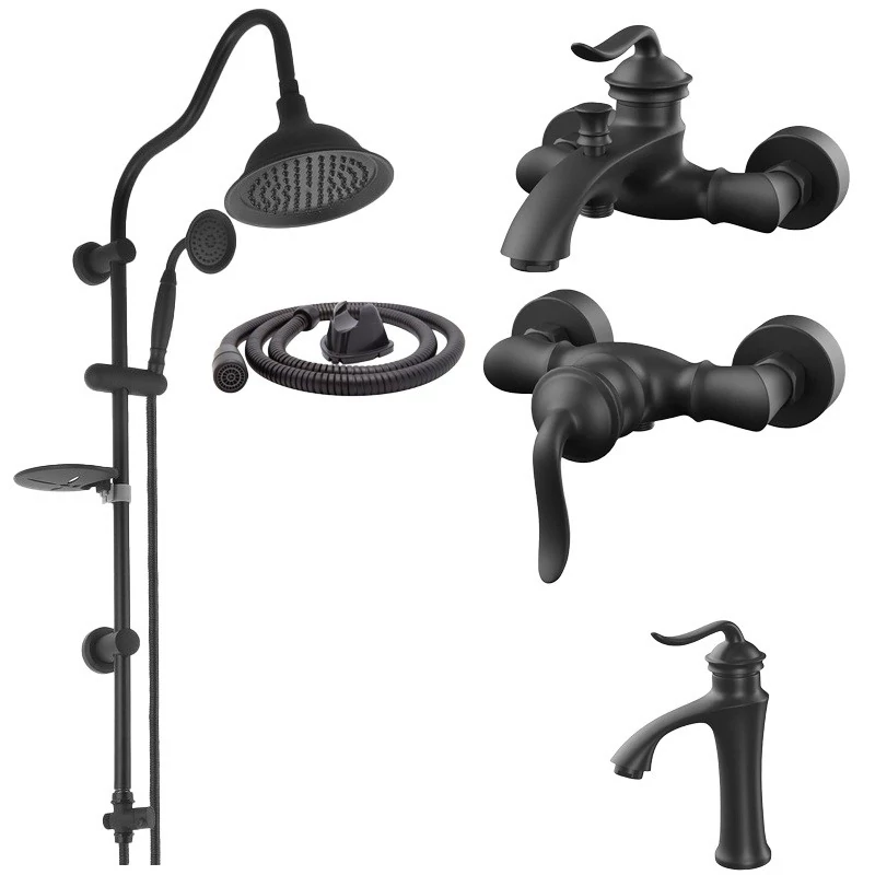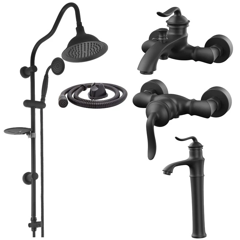 ست شیرالات زحل ( مدل هلن مشکی ) همراه روشویی پایه بلند
