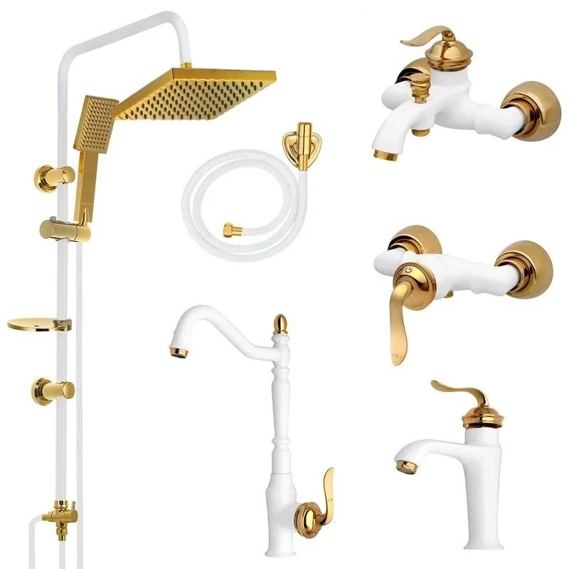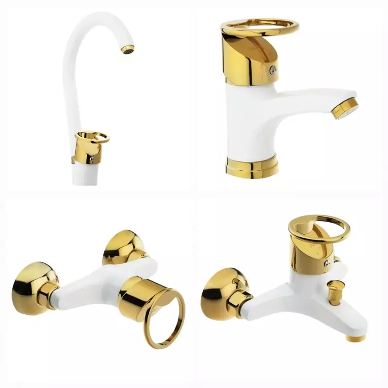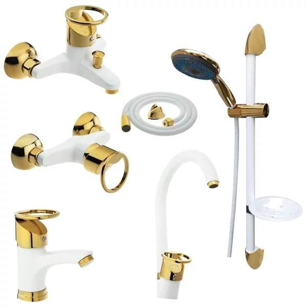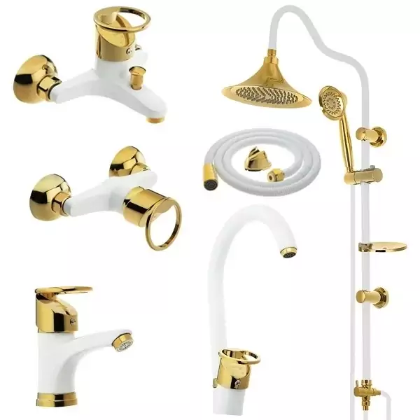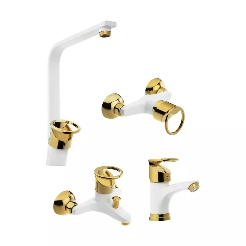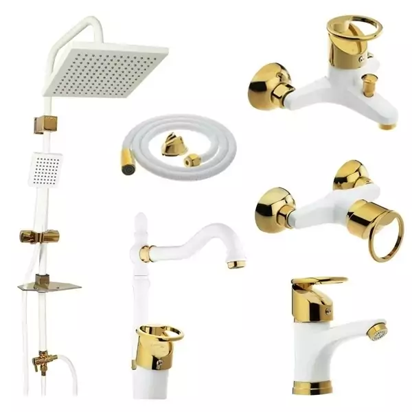 ست شیرالات زحل (مدل هلن سفید طلا) مجموعه 6 عددی