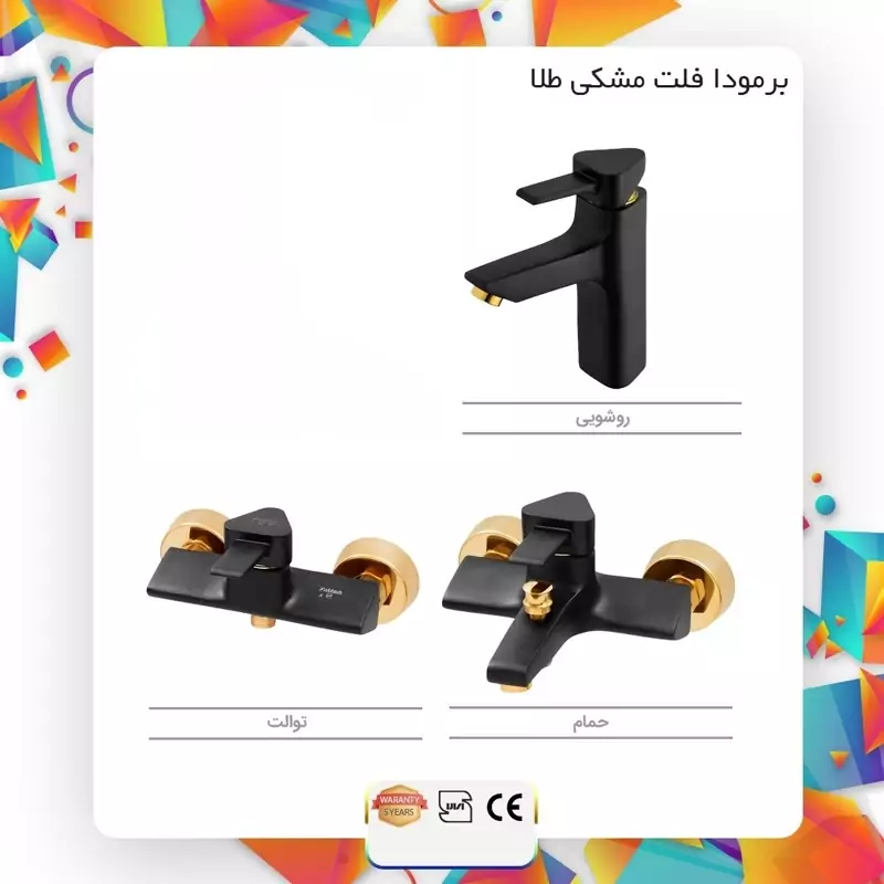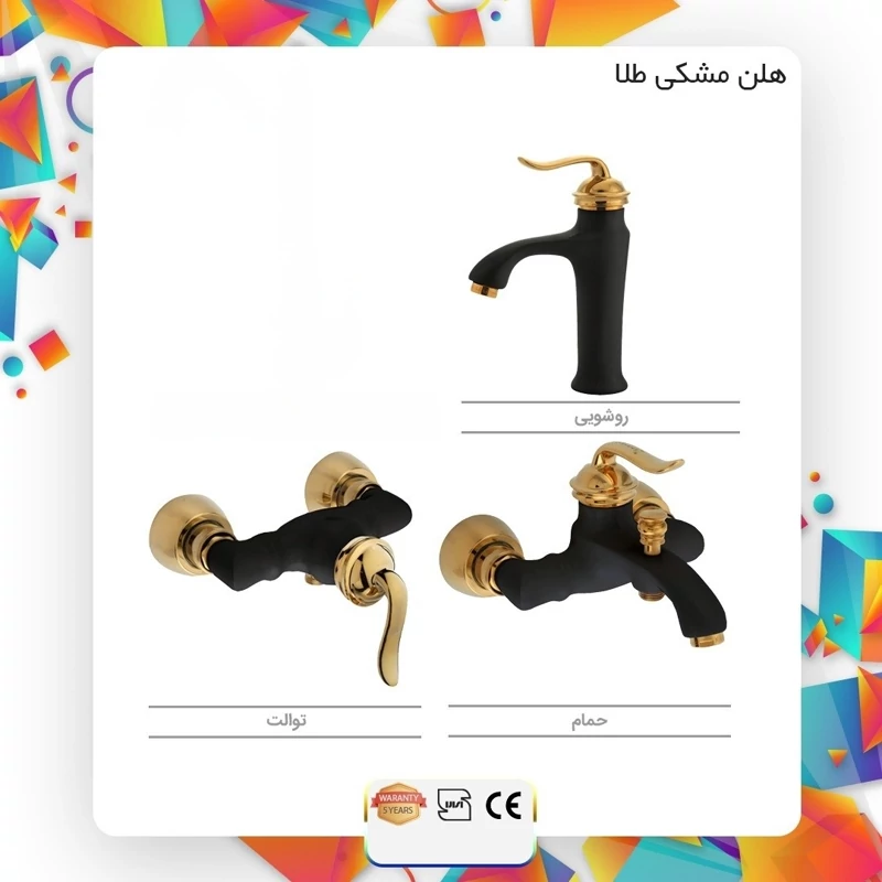 ست شیرالات زحل (مدل هیرسا مشکی طلا) مجموعه 6 عددی