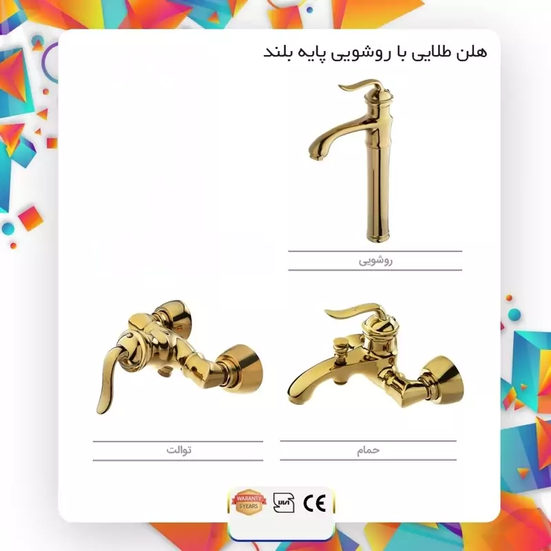 شیرالات زحل (مدل هلن طلایی مجموعه 3 عددی) به همراه روشویی پایه بلند