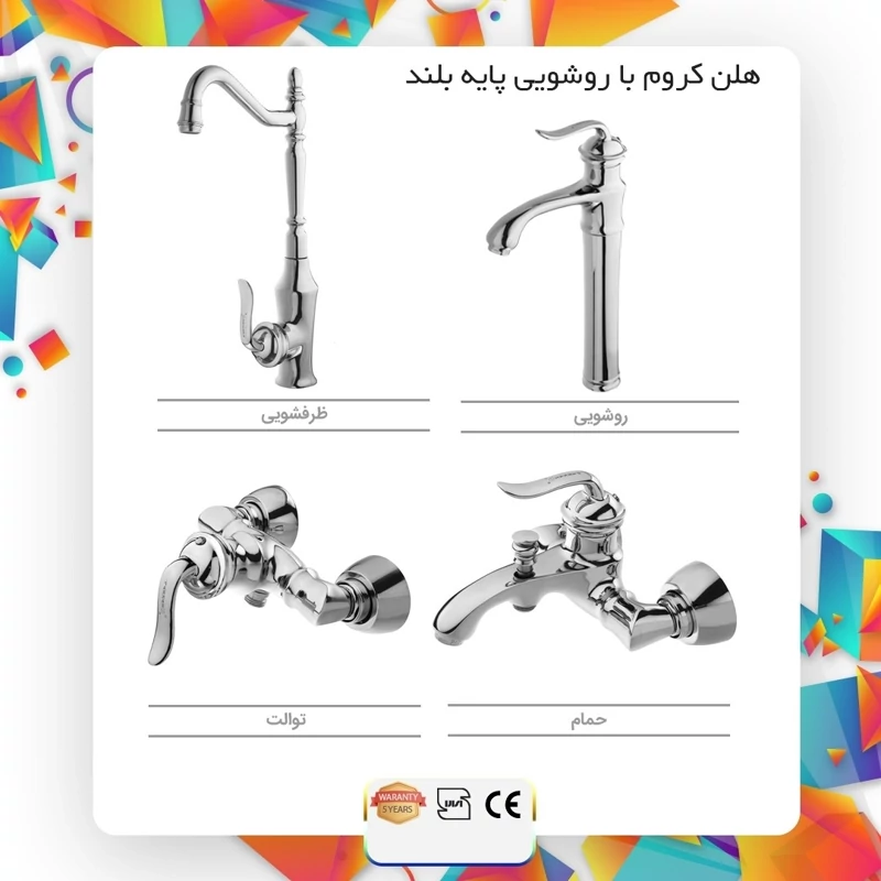 ست شیرالات زحل ( مدل هلن کروم ) مجموعه 5 تیکه.