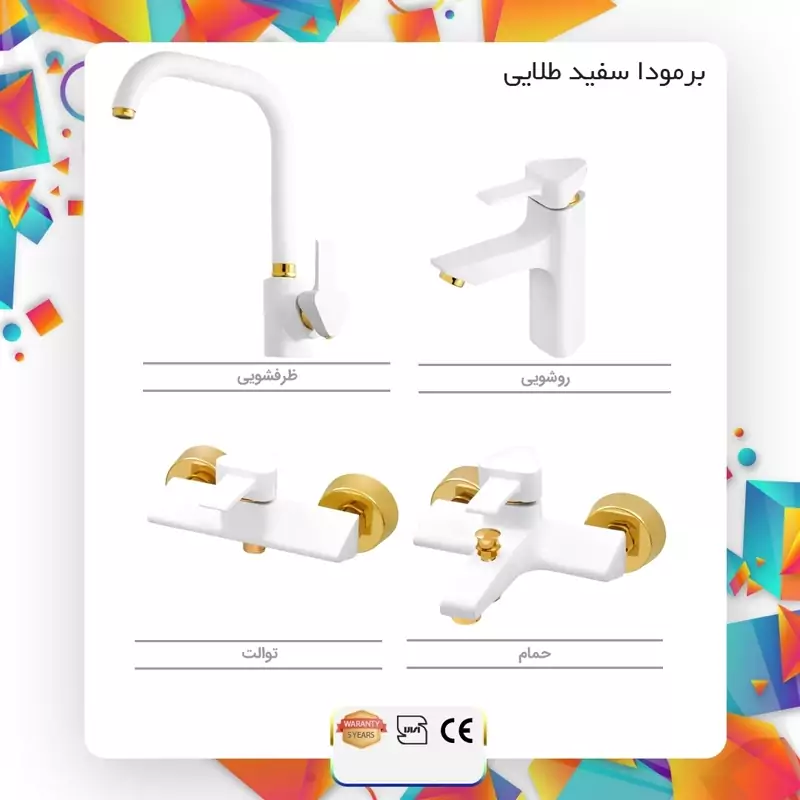 ست شیرالات زحل (مدل برمودا سفید طلا) مجموعه 5 عددی