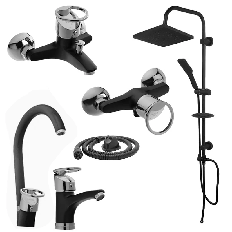ست شیرالات زحل ( مدل هلن مشکی ) همراه روشویی پایه بلند