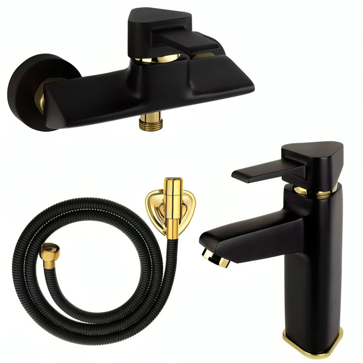 شیر روشویی و توالت برمودا مشکی طلا به همراه شلنگ توالت
