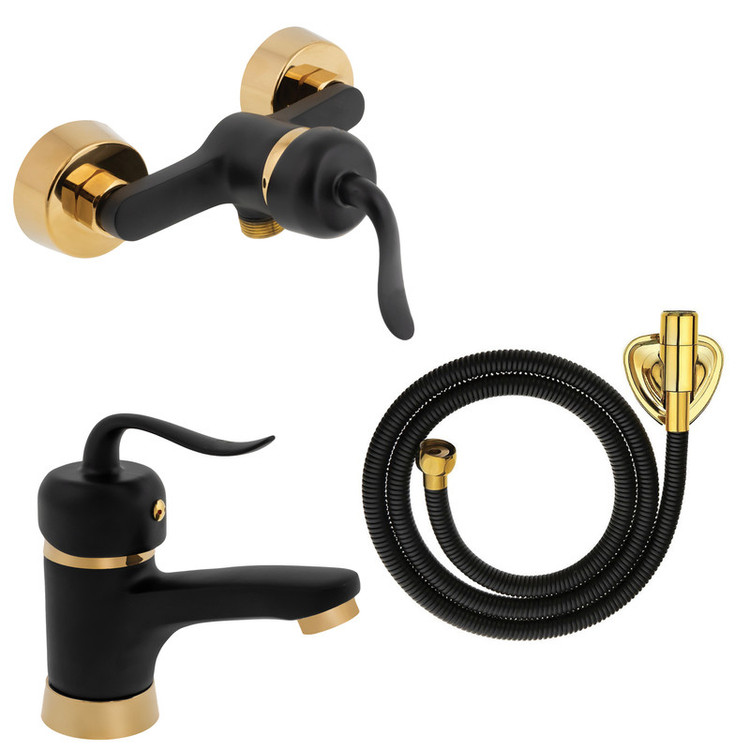 شیر توالت x شیر روشویی قاصدک مشکی طلا x شلنگ توالت مشکی طلا