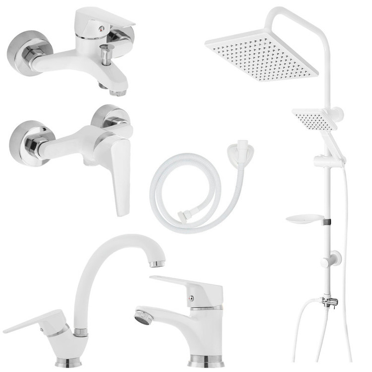 ست شیرالات دنا سفید کروم x شلنگ اتصال به شیر پیسوال سایز 3/8 x آچار زیر بندی x شلنگ توالت سفید x دوش حمام سفید x برگ گارانتی x