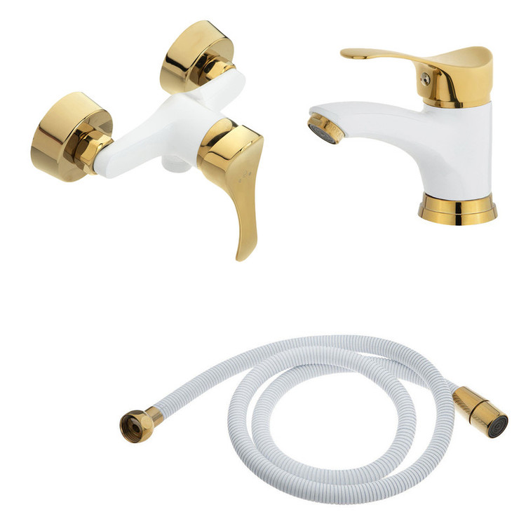 شیر روشویی و توالت نگار سفید طلایی xxx شلنگ توالت سفید طلایی xxx برگ گارانتی