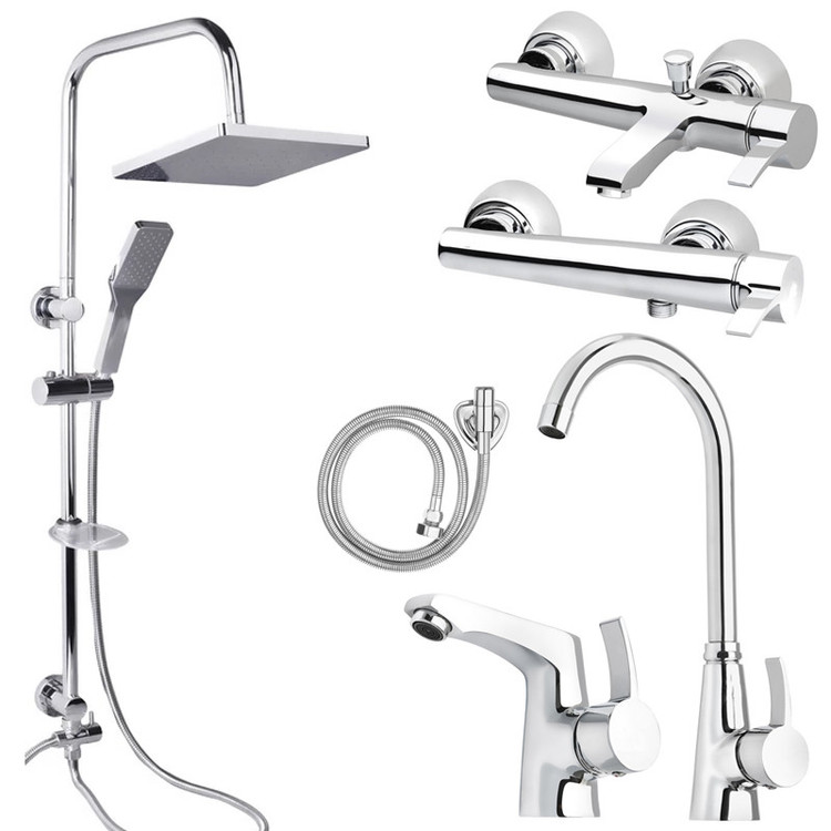 ست شیرالات هیرسا کروم x دوش حمام و شلنگ توالت کروم x