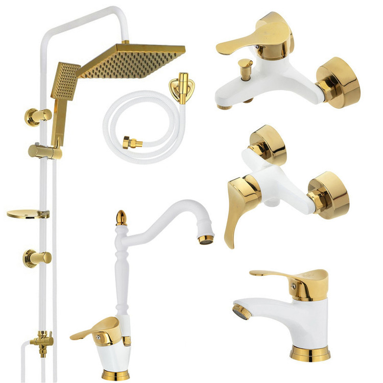 ست شیرالات آیلار سفید طلا x دوش حمام و شلنگ توالت سفید طلایی