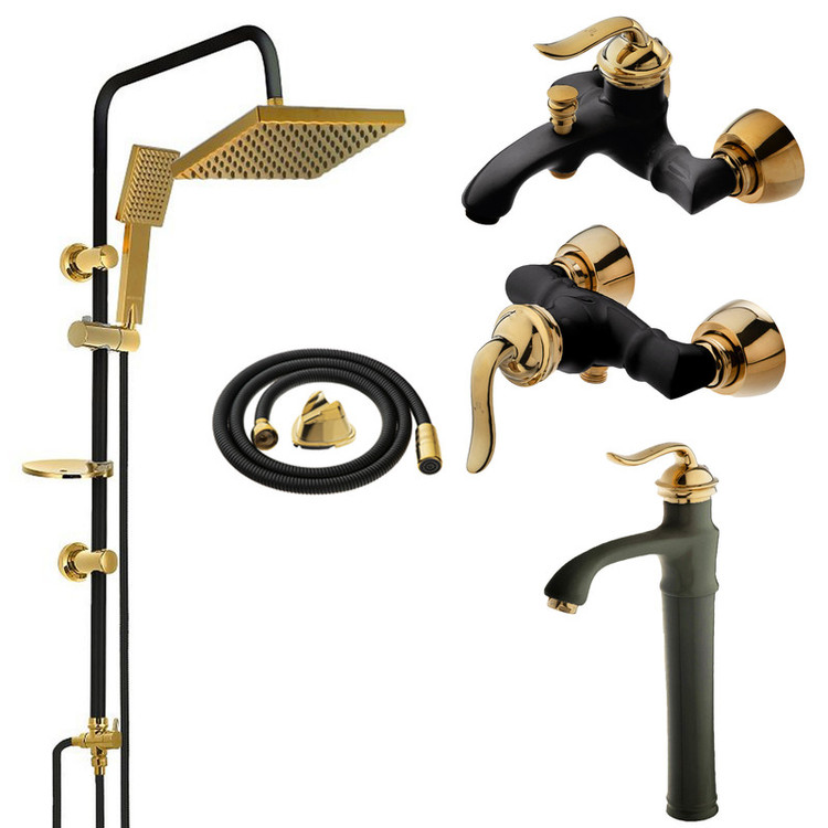 شیر روشویی پایه بلند xx شیر توالت xx شیر حمام xx دوش حمام xx شلنگ توالت مشکی طلایی