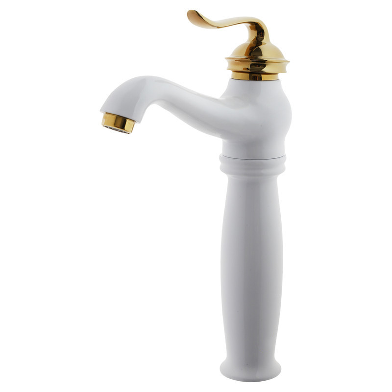 شیر روشویی هلن پایه بلند سفید طلایی x آچار زیربندی x شلنگ اتصال به شیر پیسوال سایز 3.8
