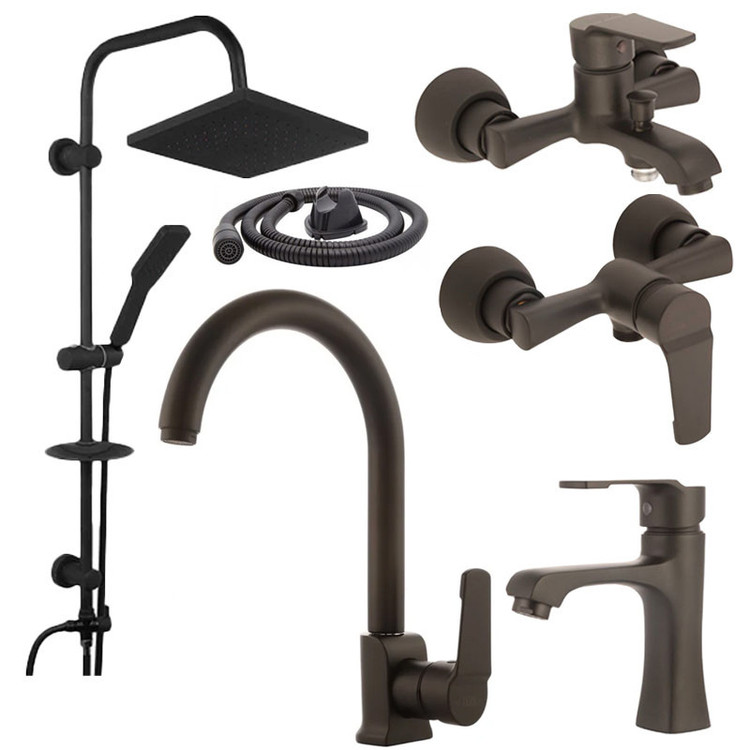 ست شیرآلات زحل کد 821 مشکی به همراه دوش حمام و شلنگ توالت