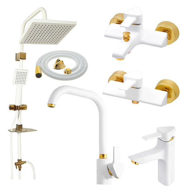 ست شیرالات دوش حمام سفید طلایی شلنگ توالت سفید طلایی شلنگ های اتصال به شیر پیسوال برای شیر روشویی و ظرفشویی آچار زیربندی مچی