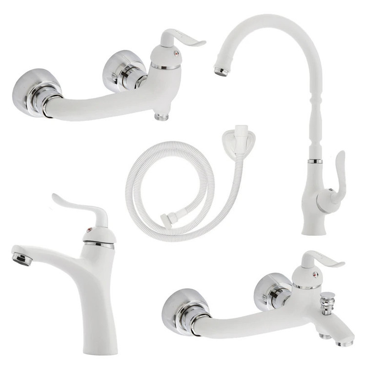ست شیرآلات آرچر سفید به همراه شلنگ توالت
