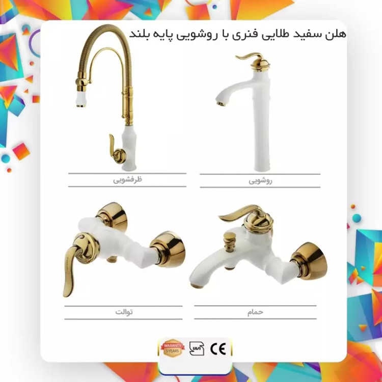 شیرالات زحل (مدل هلن فنری سفید طلا) به همراه روشویی پایه بلند