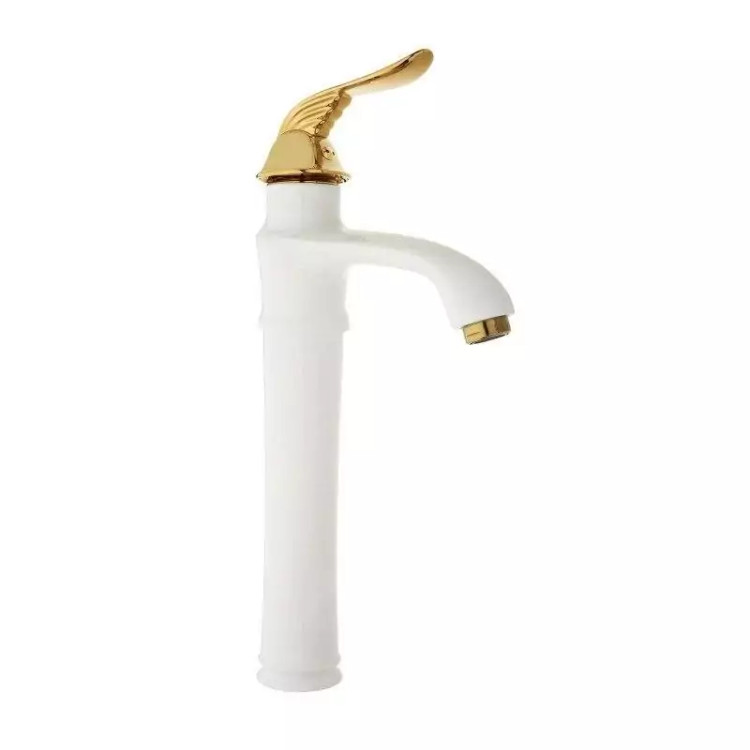 شیر روشویی پایه بلند زحل ( مدل پریا سفید طلا )